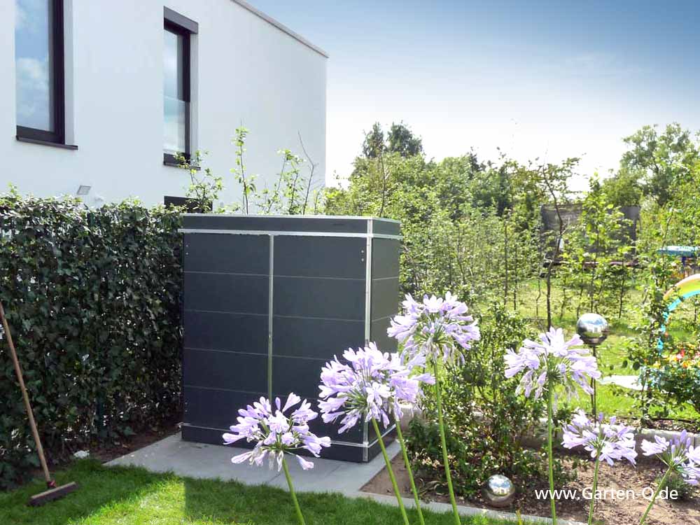 Die verschiedenen Garten[Q] Modelle, verstauen z.B. Geräte, Werkzeuge, Sitzauflagen, Rasenmäher, Kinderspielzeug bis hin zu Mülltonnen, Müllcontainer, Fahrräder, Gartenmöbel, Wärmepumpe, Kaminholz und vieles mehr. Alles in einem einheitlichen "Look & Feel" mit direktem Zugriff ohne "langes Herumräumen".