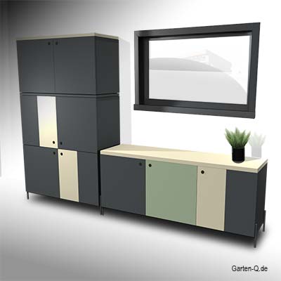Die Vita-Serie vereint beide Elemente. Man könnte einen Garten[Q]Vita problemlos als Sideboard oder Highboard in sein Wohnzimmer stellen. Aber eigentlich gehört er nach draußen auf den Balkon, in den Garten oder auf die Terrasse.