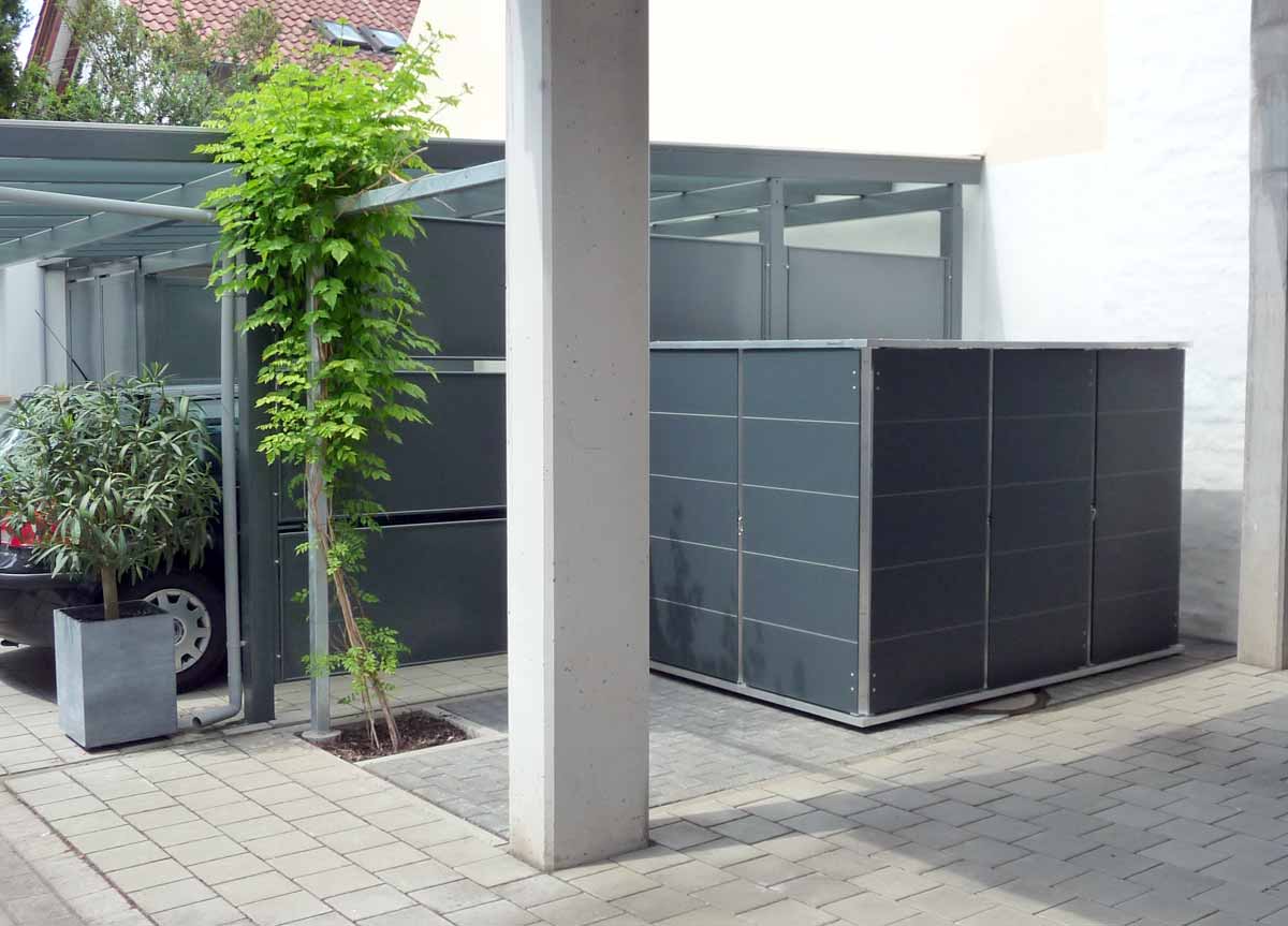 Auch die Unterstände lassen sich mit Ihrem Gartenschrank verbinden. Dadurch erhalten Sie noch mehr Stauraum und Funktionalität. Lassen Sie sich über die Möglichkeiten beraten.