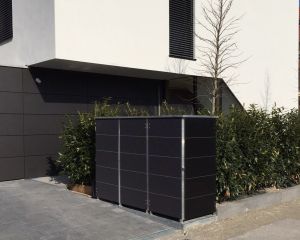 Unsere Mülltonnenboxen aus HPL sind für alle Tonnengrößen bis zu 240 Liter geeignet. Modular und flexibel verstauen diese Müllboxen Mülltonnen für Privathäuser und Müllcontainer von Wohnanlagen in beliebiger Anzahl und allen gängigen Größen. Die Besonderheit der modernen Design-Mülltonnenhäuser liegt in der Möglichkeit diese vielfältig auf Ihre individuellen Bedürfnisse abzustimmen.