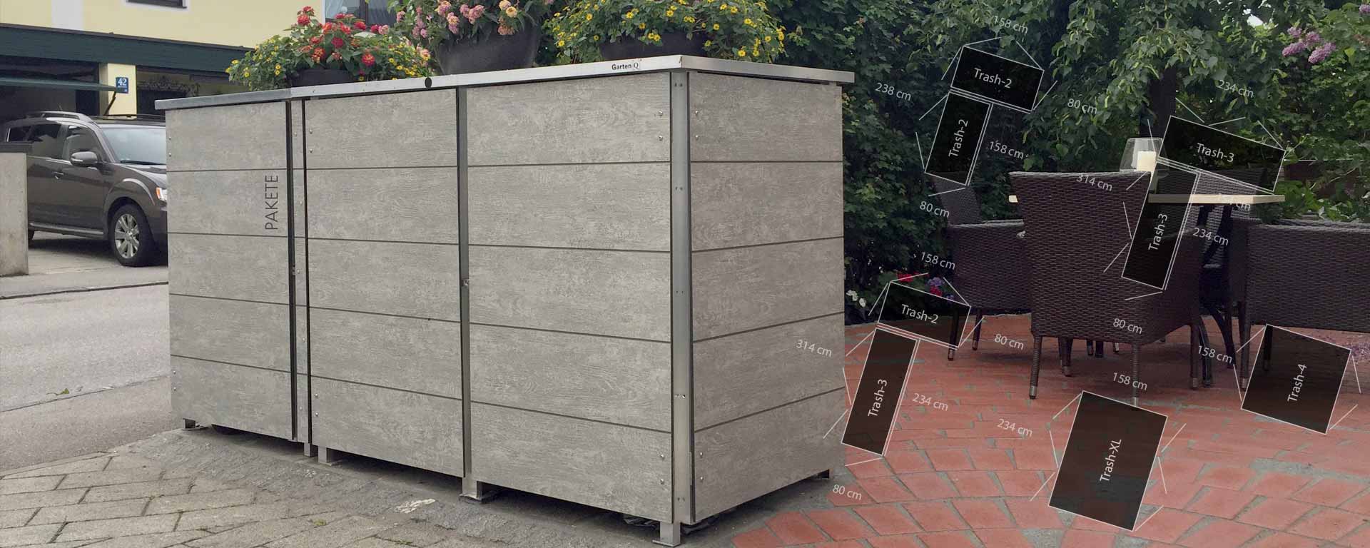 - Optionale Nutzung als Paketkasten oder mit Paketablage über den Tonnen