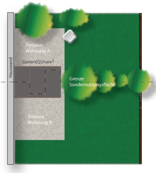 - Zwei Besitzer teilen sich einen Garten[Q] (Kostenteilung)